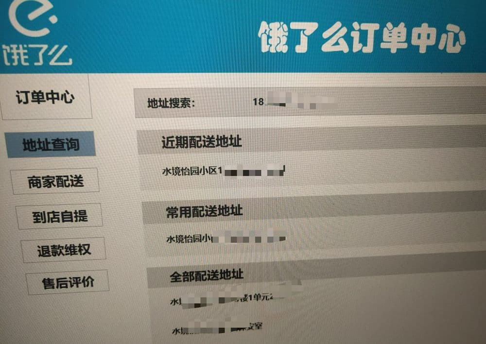 个人外卖收货地址查询
